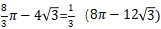 由于半径为4,圆的面积为16π,此扇形圆心角为60°,那么面积为8π/3,此扇形内接等边三角形,边长为4,根据三角函数,高为 ,所以三角形面积为,弓形面积为扇形面积减三角形面积,等于,选D。